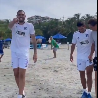 Los jugadores de Millonarios entrenaron en las bellas playas de Santa Marta y aprovecharon su paso por la bahía para darse un chapuzón en el mar.